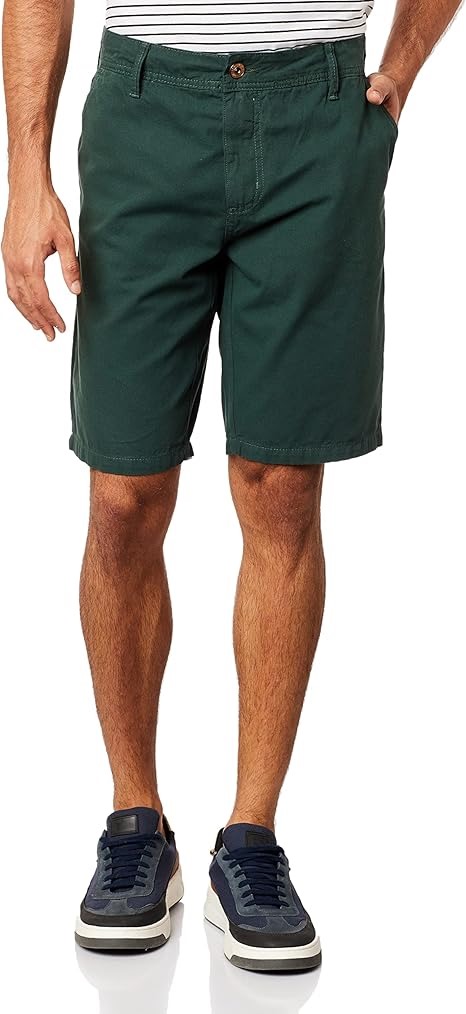 Bermuda Forum de base Sarja, caracterizada pela sua modelagem slim e caimento reto. O modelo possui cós com passantes, fecho frontal por zíper e botão, bolsos estilo faca, bolsos traseiros